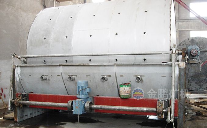 外濾式筒形真空過濾機主要由筒體、傳動機構、分配頭、主軸承、攪拌器、礦漿槽、刮板和繞線機構等構成。