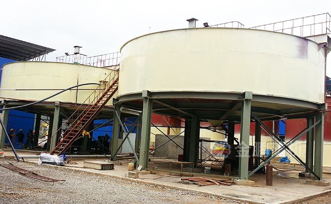 1、 攪拌浸出---金的浸出主要是在浸出槽中實現的,含氰化物的礦漿在葉輪和壓縮空氣的作用下,被強烈攪拌,有利于提高浸出效果。浸出槽通常采用多臺串聯配置;